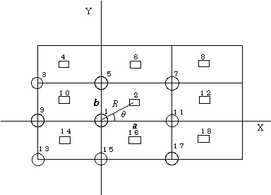 ニットセルの大きさ(a,b)とB分子のセル中の位置(θ)の3つの変数で全体の配置が決