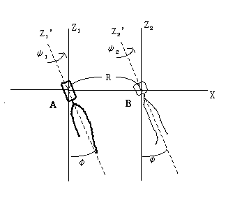 子の相対配置に関する計算で、図3に示すように分子間距離(R),AB両分子のZ軸の周り