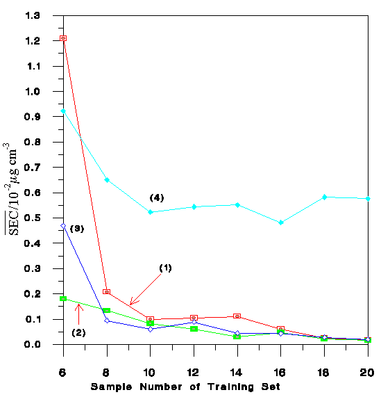 $B$NA}2C$H$H$b$K#P#R#E#S#S$O8:>/$9$k$,B?$/$J$j$9$.$k$H%*!]%P!]%U%#%C%H$H$J$j!"M=B,8m:9$N860x$H$b$J$k$N$G0x;R?t$b9MN8$7$?#S#E#C!J(BStandard Error of Calibration$B!K$,Ds0F$5$l$F$$$k!#(B