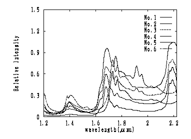 Figure 3. サンプルとして用いたプラスチックの近赤外スペクトル(番号の意味はTable 1を参照)
