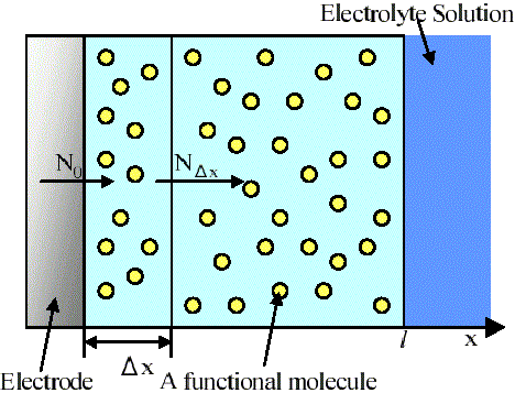 A redox reaction between the electrode and the functional molecule is shown by eq. 3