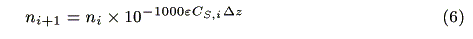 where ni (s-1) and ni+1 (s-1) are the number of incident photons at z = i and transmitted photons at z = i + 1, respectively, CS,i (mol cm-3) is the concentration of the ground state sensitizer, e (mol-1dm3cm-1) is a molar absorption coefficient. The increment of the excited state of the sensitizer in the microvolume, DCS*,i(mol cm-3s-1) is expressed by the following equation: